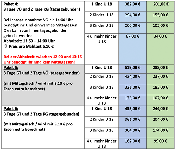 (Beiträge sind in 11 Monatsbeiträgen angegeben / der Ferienmonat August ist frei)
